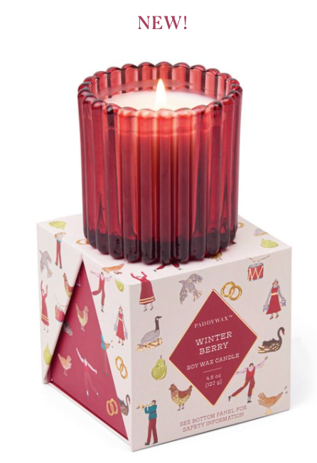 Christmas 4.5oz/127g Ribbed Glass Candle - R Ed - Winter Berry