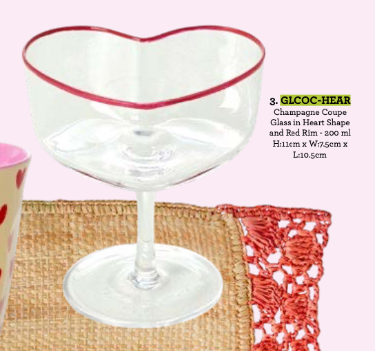 Champagne Cup Glass in Heart Shape and Red Rim - 200 ml