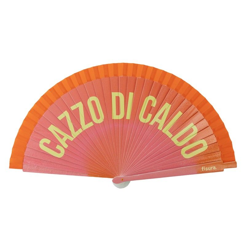 Painted hand fan ‘cazzo di caldo’ orange gradient