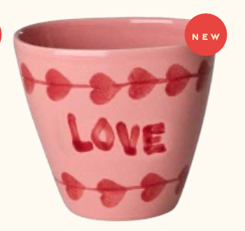 Keraminė ovali taurė su rankomis dažyta meile